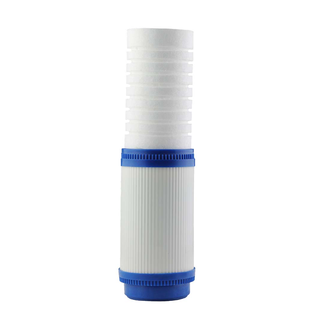 – Bujía o cartucho de polipropileno de 5 micras y carbón activado de 10″x2,5″