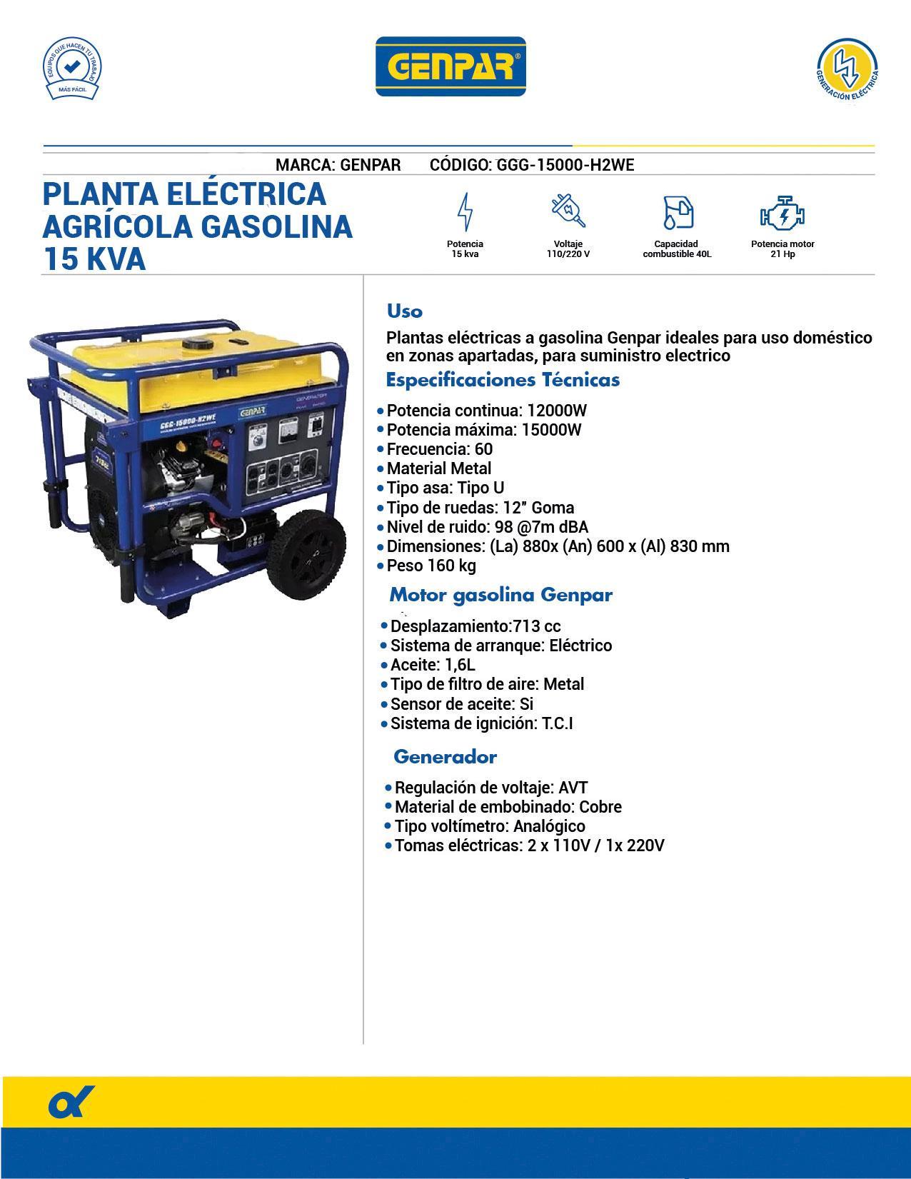 Planta Eléctrica A Gasolina 15Kva Genpar
