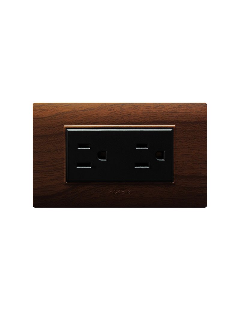 Toma Corriente 2P+T Doble Color Nogal Con Negro